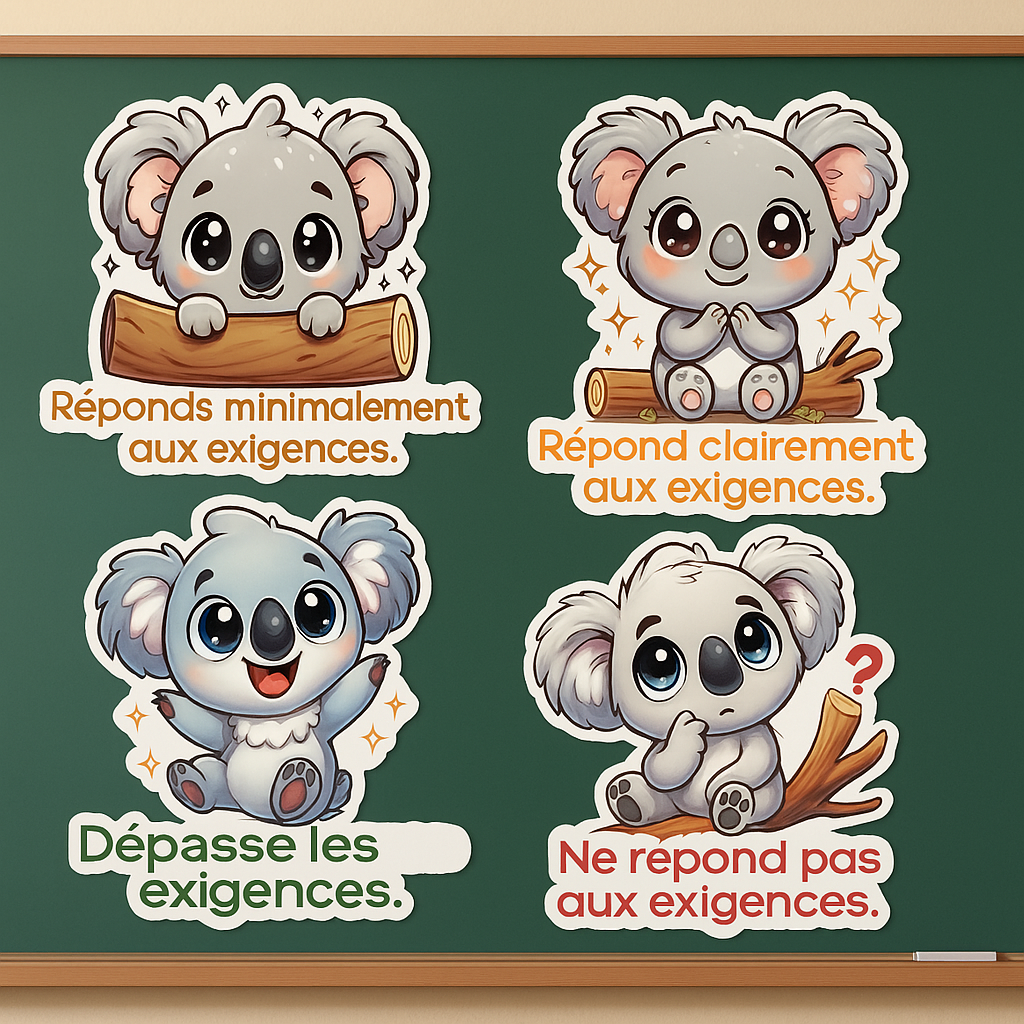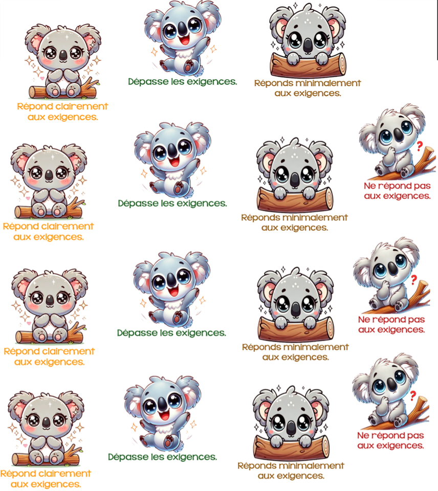 Lot de 48 adorables autocollants comportant les quatre barèmes de notation pour les classes d'accueil.