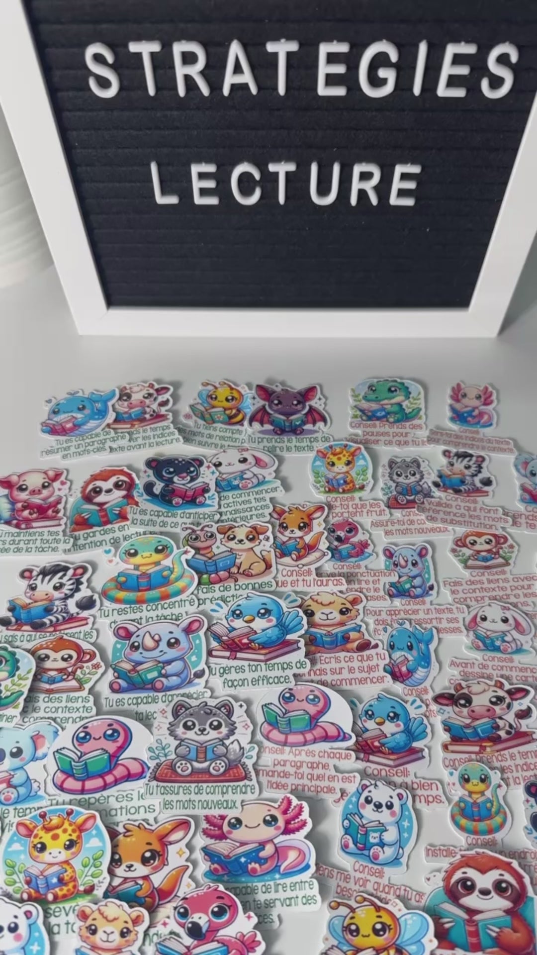 Lot de 50 autocollants de stratégies de lecture conçus pour motiver, guider et outiller les élèves... tout en ajoutant une jolie touche à leurs lectures !