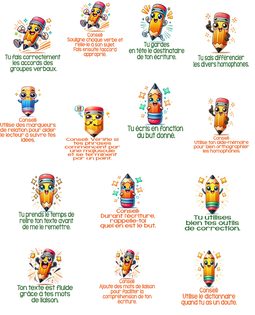 Pensés pour motiver, guider et outiller les élèves… tout en ajoutant une touche ludique à leurs textes !