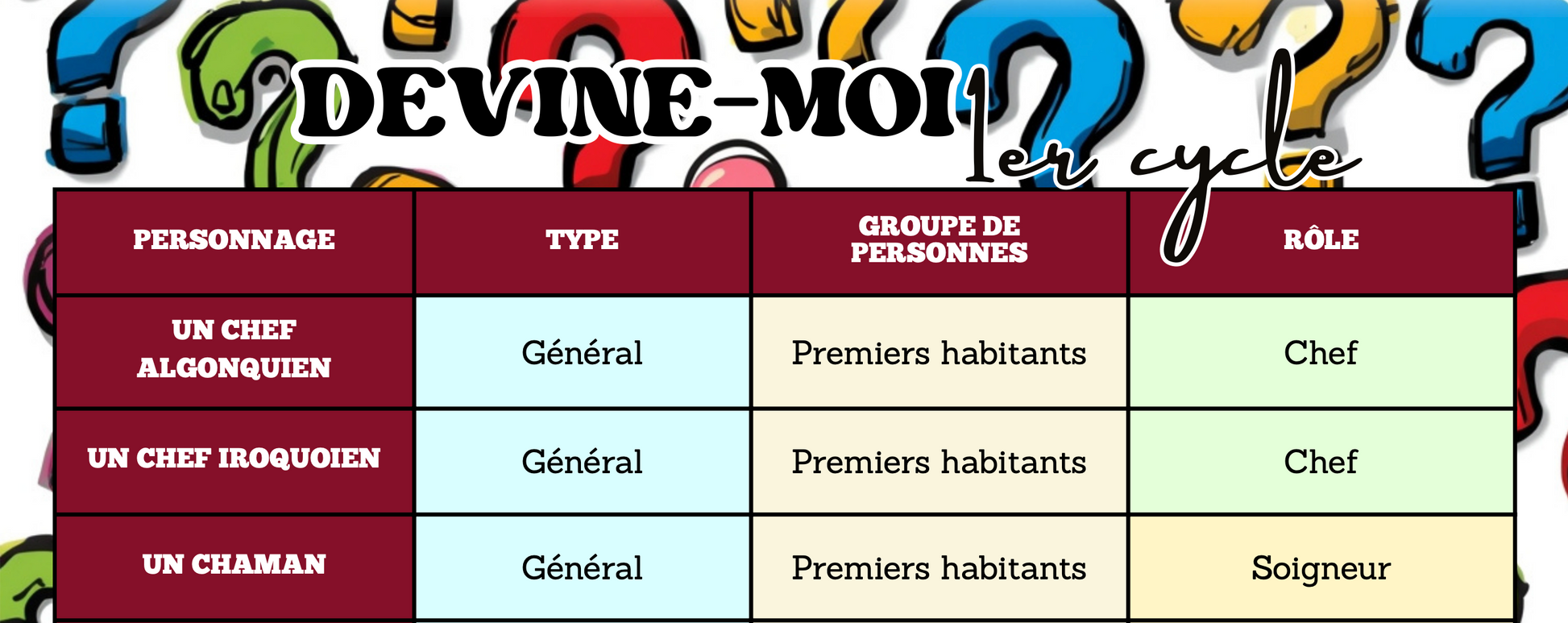 Dans ce jeu, les élèves doivent deviner le personnage mystère de leur adversaire en posant des questions simples. Ils découvrent ainsi les premiers habitants et les personnages de la Nouvelle-France tout en développant leur réflexion.